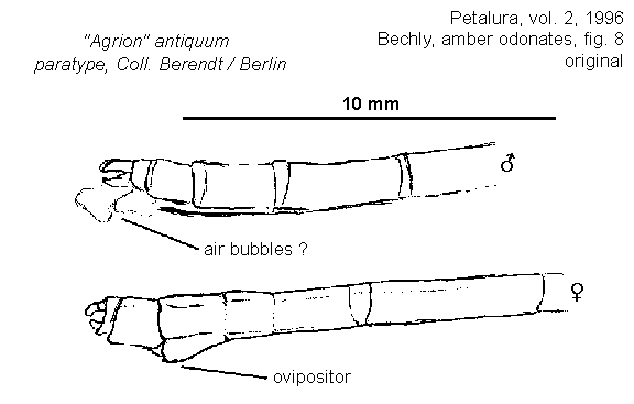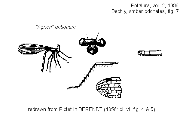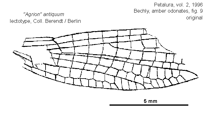 - ANDER (1942: 76): "Agrion antiquum Pictet et Hagen 1856 ... Die systematische Stellung dieser Art ist noch nicht