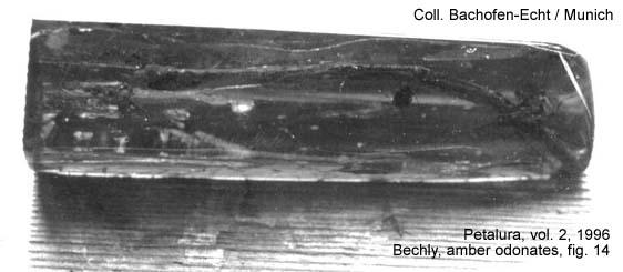 Colour-photos of the last two mentioned specimens, probably Coenagrionidae, have been published in SCHLEE (1990: 83) (see fig. 1 and fig. 2). Unfortunately the magnificent amber collection of the Stuttgart museum is presently (fall 1996, probably till end of 1997) not open for scientific studies, because of the unexpected retirement of Dr. Schlee.