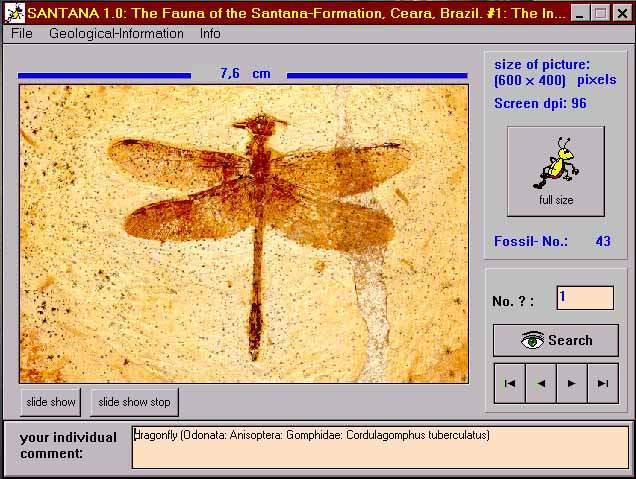 The fossils were directly scanned with a flatbed scanner, therefore the quality of the pictures of small fossils is somewhat lower than that of the larger specimens. The only other shortcomings are the absence of a search routine for keywords, the lack of a possibility to export the picture files, and some minor faults, like some double pictures and a few pictures with incorrect scale (e.g. no. 143). The installation is easy and well explained in the enclosed readme-text.